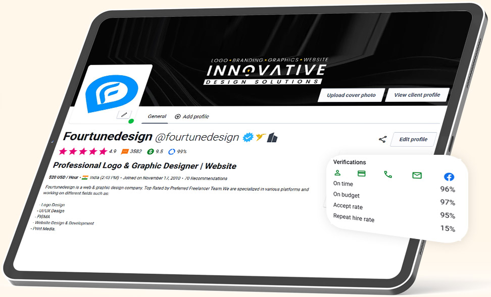 Welcome to Fourtune Design, your trusted partner for all things design. With 15 years of experience, we’ve grown into a leading agency that offers a full range of services to meet your needs. Whether it’s crafting a unique logo, building a user-friendly website, or creating innovative graphic designs, we’re here to bring your brand to life.